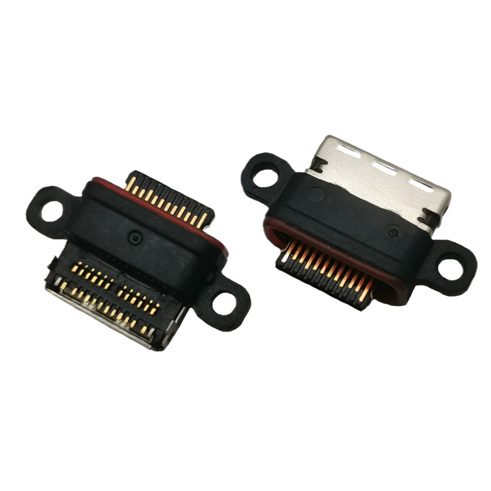 TYPE C 24P母座 板上雙貼SMT 舍片外漏 帶雙耳螺絲孔 CH=1.6MM L=7.55MM(華碩ROG2、3、5代游戲手機(jī)尾插)